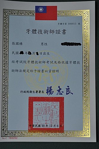 今天收到我的牙體技術師證書,牙體技術所申請,待設置辦法公告再行申請設立。