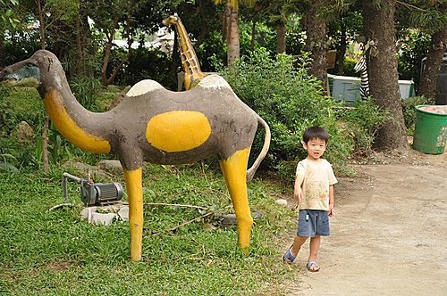 童年的我也曾像孩子一樣看著它,孩子牠是猩猩,跟他熟了就可以跟爸爸一樣跟同學們爬到猩猩的肩膀