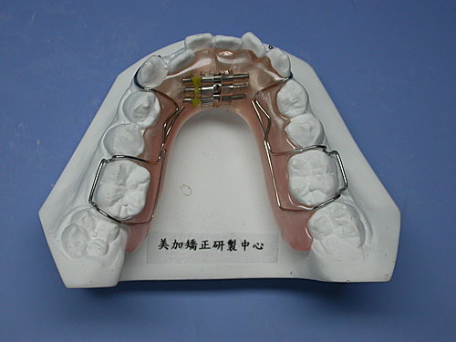 下顎擴大牙弓治療前牙擁擠並可加裝彈線將前牙排齊,在這裡並沒有放Labial Bow 以免造成擴大時前牙內壓。
