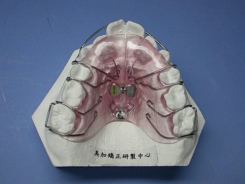 用以擴大前牙弓治療倒V字型牙弓前牙擁擠但不想擴大牙弓寬度,增加z-spring 將前牙彈出。